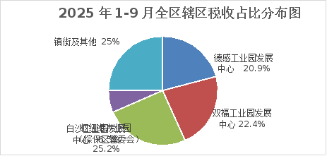 ——工业园辖区税收完成情况。按税务口径统计,1-9月,江津工业园总计入库46.7亿元,其中双福工业园发展中心入库14亿元,区级留存6.8亿元,同比入库增长0.4%、区级留存下降5.2%;德感工业园发展中心入库13亿元,区级留存6.5亿元,同比分别增长44.7%、60%(主要增收原因包括圣泉街道自今年7月起归入德感园区计算收入,其较同期增收1.56亿元;西部水资源开发有限公司临时占用耕地缴纳耕地占用税0.93亿元);枢纽港产业园(综保区管委会)入库15.7亿元,区级留存7.4亿元,同比分别增长0.4%、6.6%;白沙工业园发展中心入库4亿元,区级留存1.2亿元,同比分别下降0.5%、11.1%。