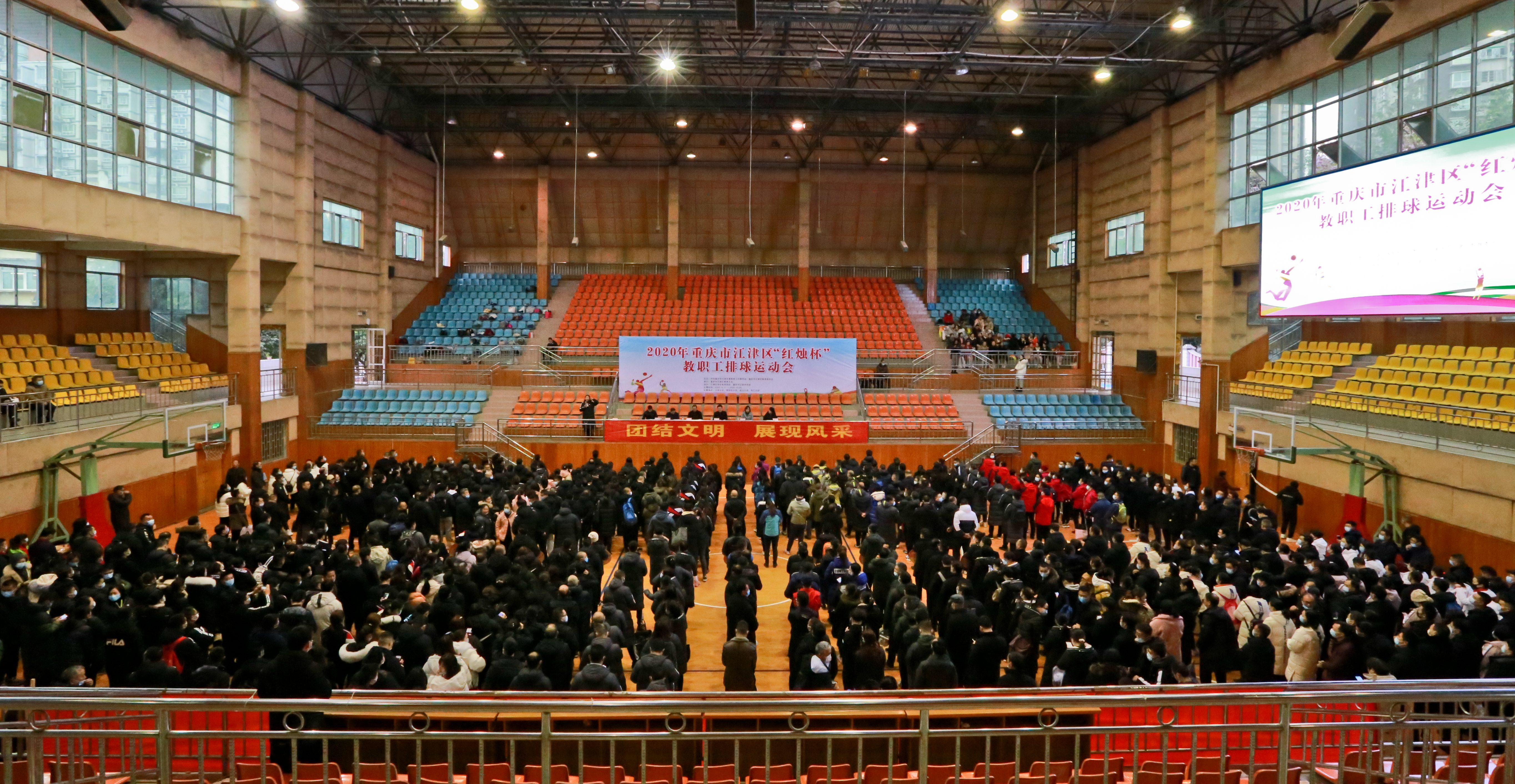 12月17日,重庆市江津区2020年“红烛杯”教职工排球运动会开幕式在江津中学体育馆隆重举行。来自21个学区、25所直属学校,共计77支代表队参加本次运动会。