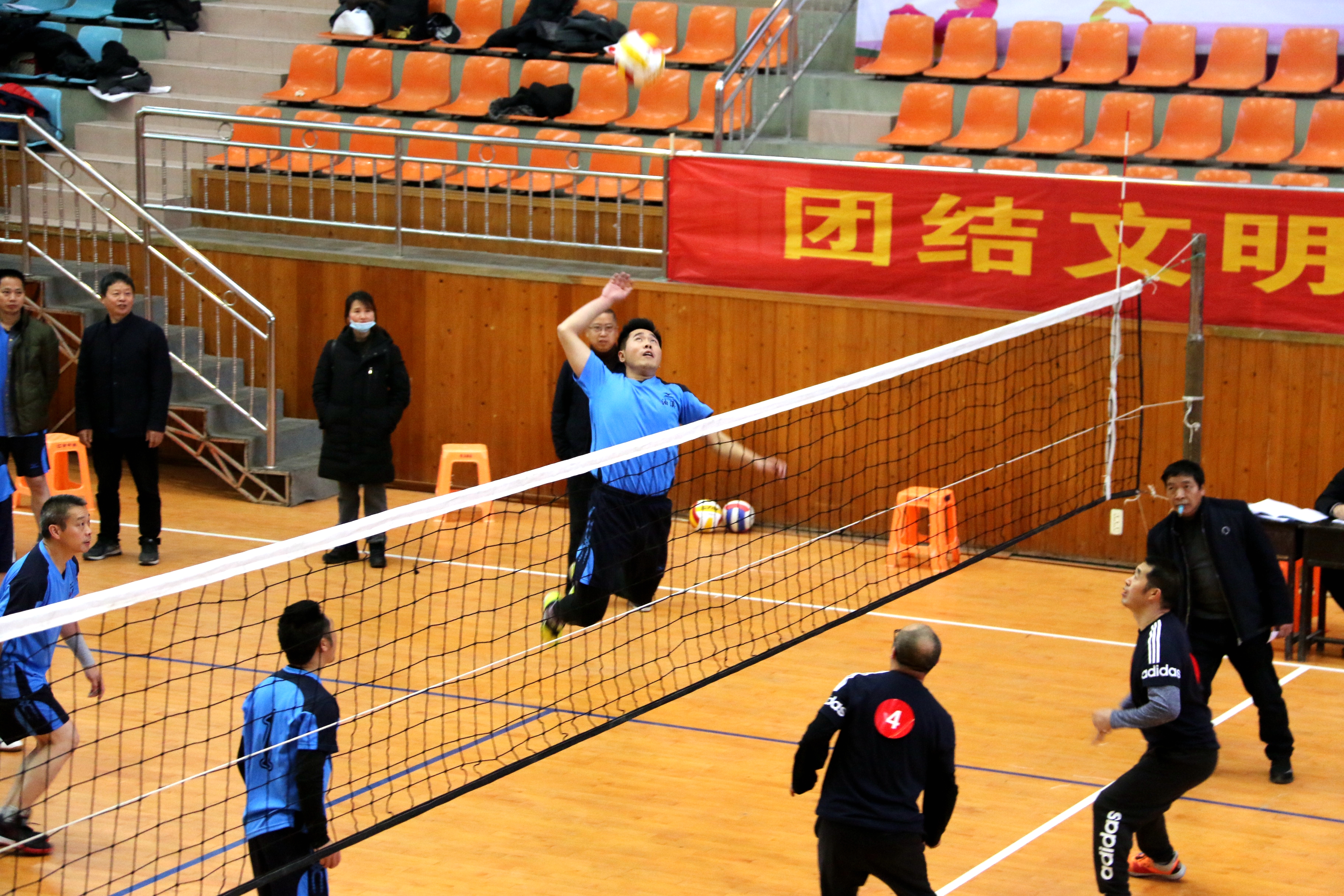 随着一声哨响,运动员们展开激烈交锋,你来我往,接球,扣杀,反击,赛场上精彩不断。