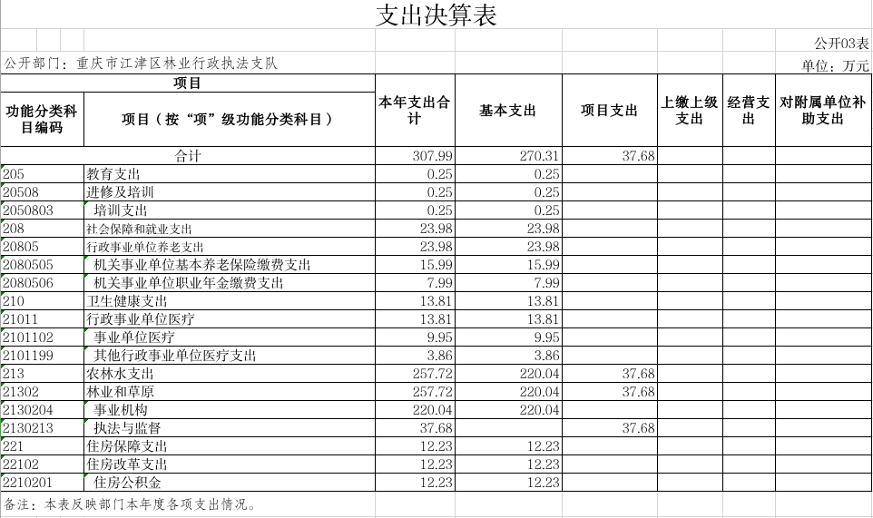 2022年度财政拨款收、支总计307.99万元。较年初预算数减少9.72万元,减少3.06%,主要原因是林业行政执法经费支出减少。