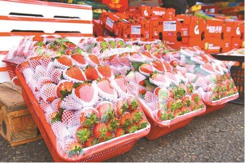 记者看到,果品交易区内人流如织,很是热闹。车厘子、草莓、蓝莓、柑橘、猕猴桃……各种新鲜水果琳琅满目,成箱成盒整齐叠放排列,市民穿梭在其中,不时驻足停留,在水果摊位前挑选一番。