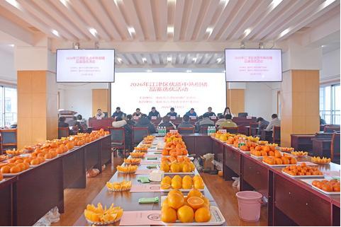 1月9日,由重庆市江津区柑橘产业协会主办的2026年江津区优质中熟柑橘品鉴选优活动在区农业农村委举行,全区13个主要柑橘产镇的24家种植主体选送了37个样品参与品鉴优选。