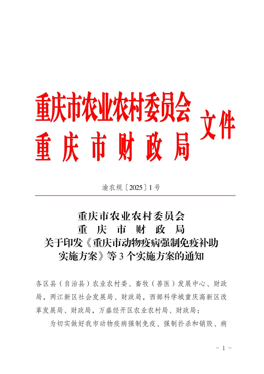 当前位置: 重庆市江津区农业农村委员会>政务公开>政府信息公开目录>基层政务公开>涉农补贴领域基层政务公开专栏>农业防灾减灾资金(动物防疫补助)>强制免疫补助>政策依据