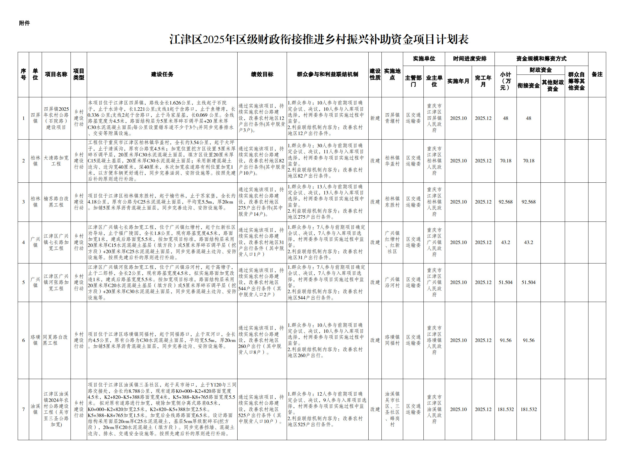 附件:江津区2025年区级财政衔接推进乡村振兴补助资金项目计划表