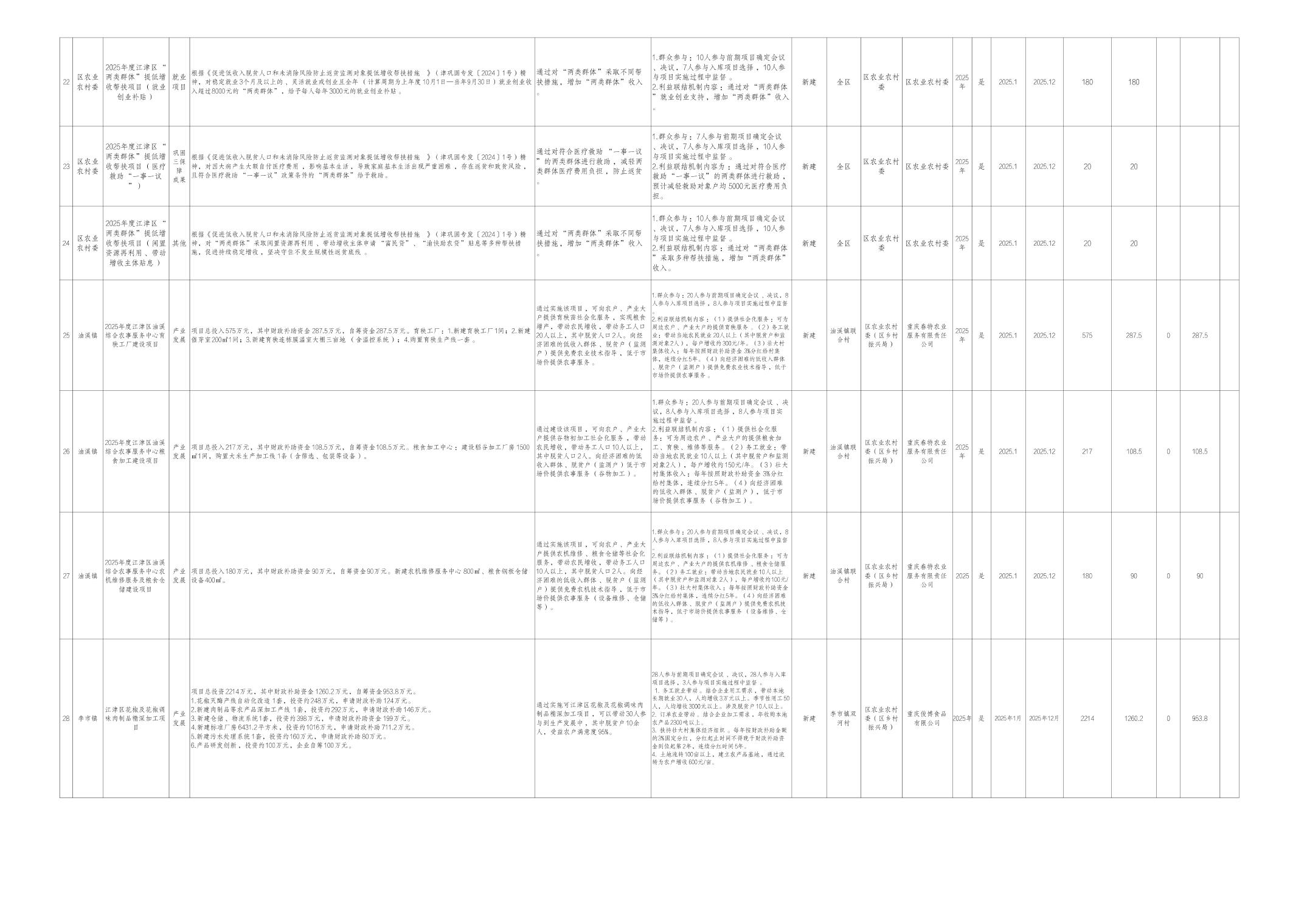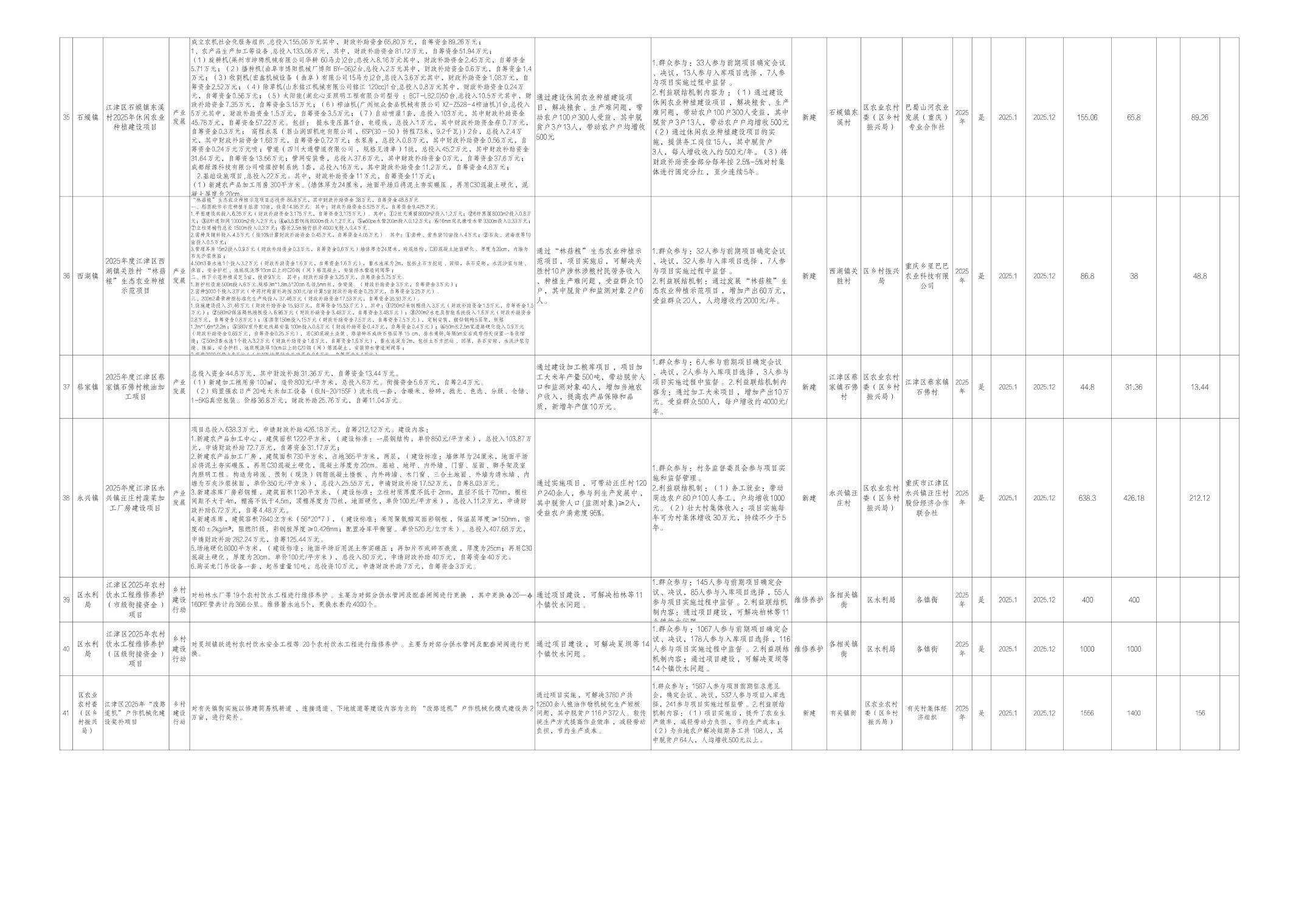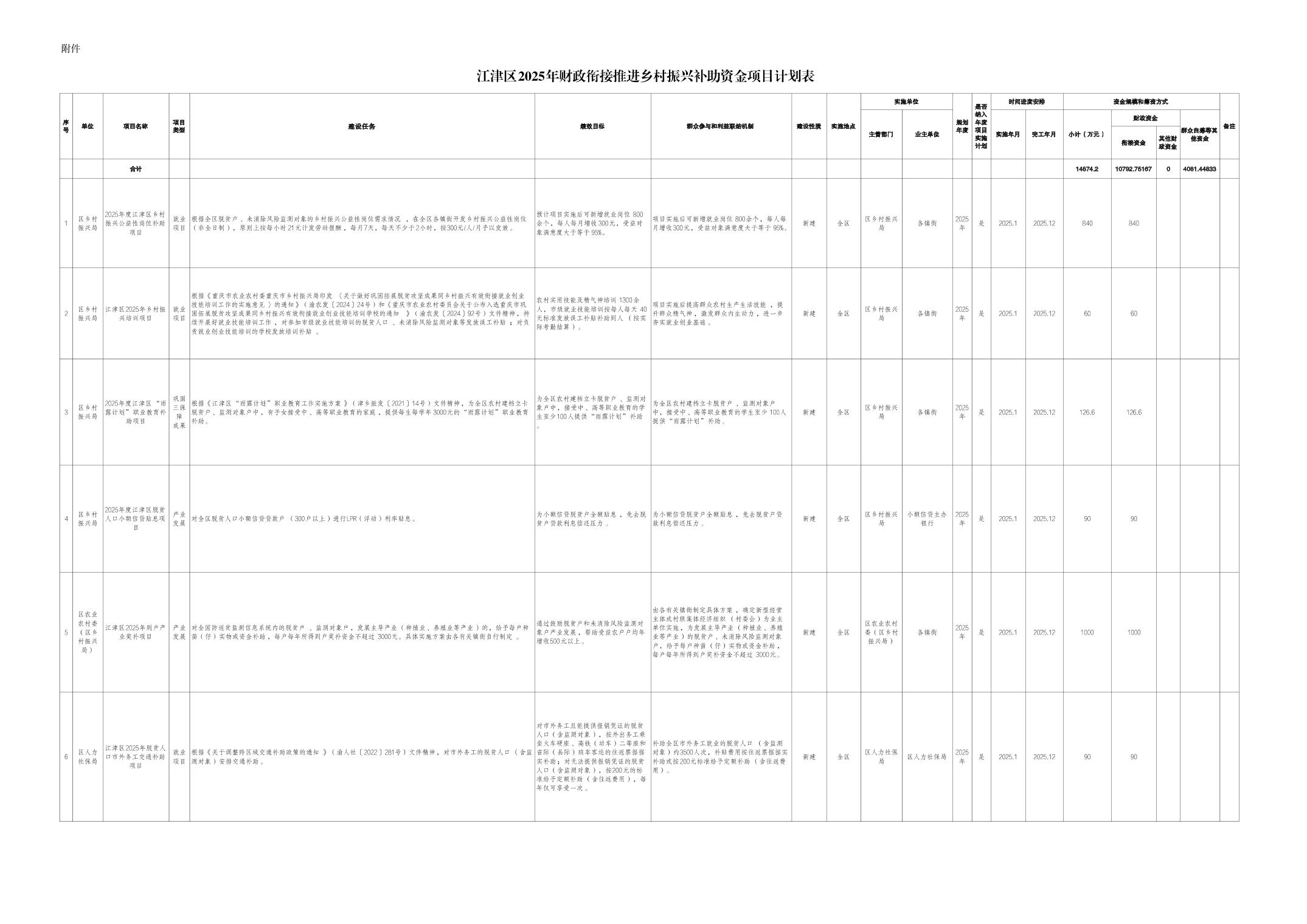 附件:江津区2025年财政衔接推进乡村振兴补助资金项目计划表