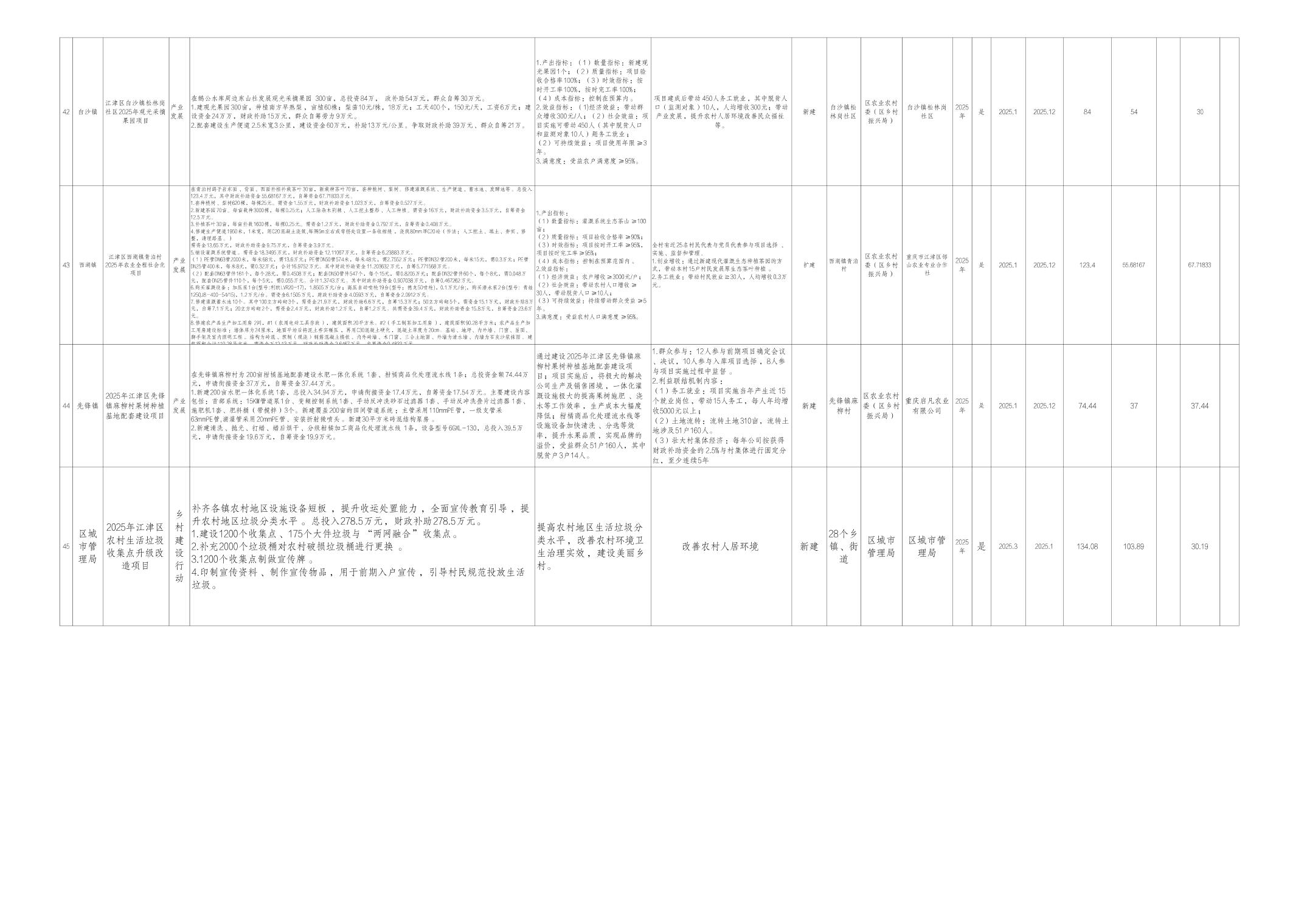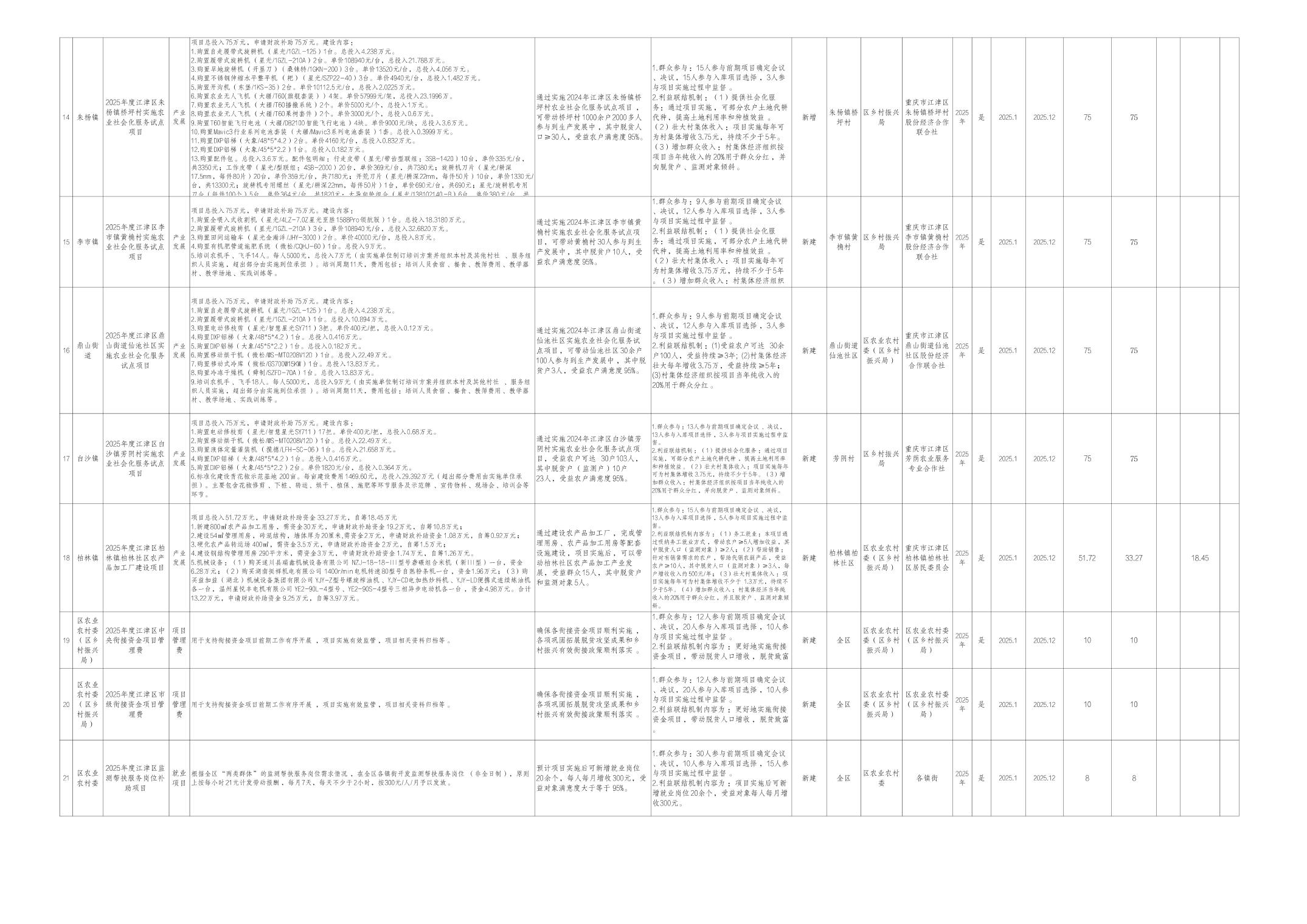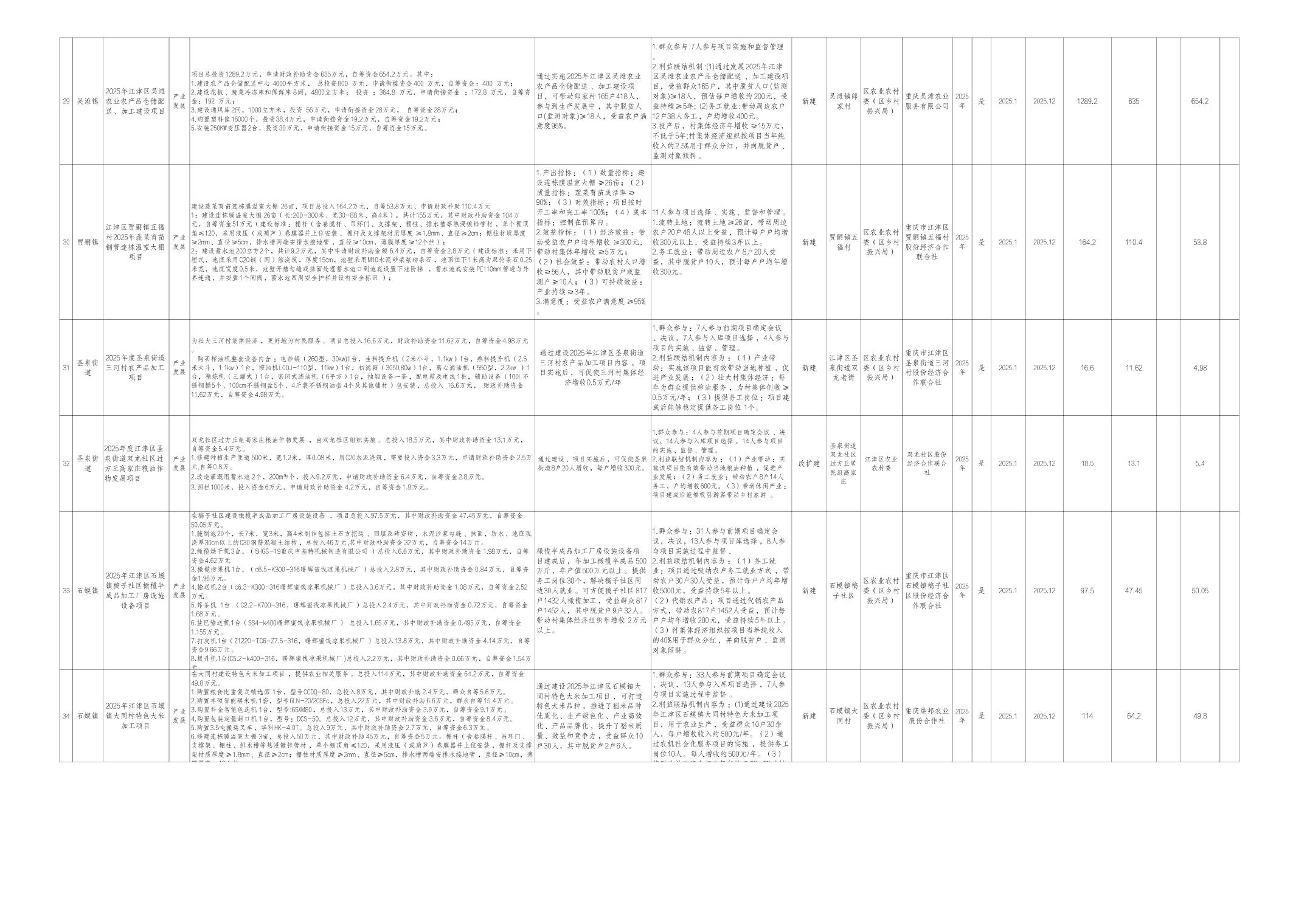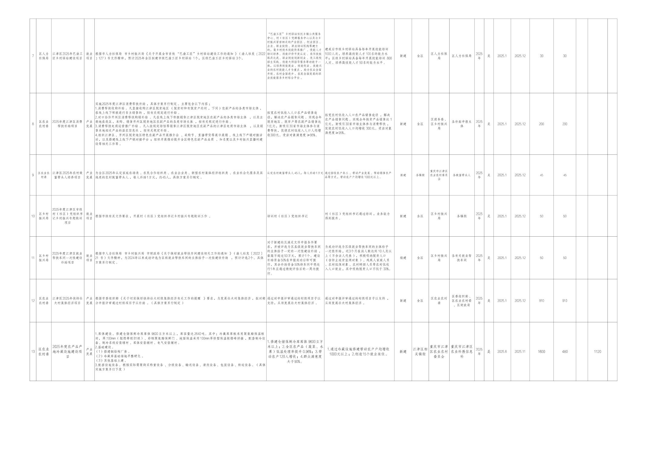 附件:江津区2025年财政衔接推进乡村振兴补助资金项目计划表