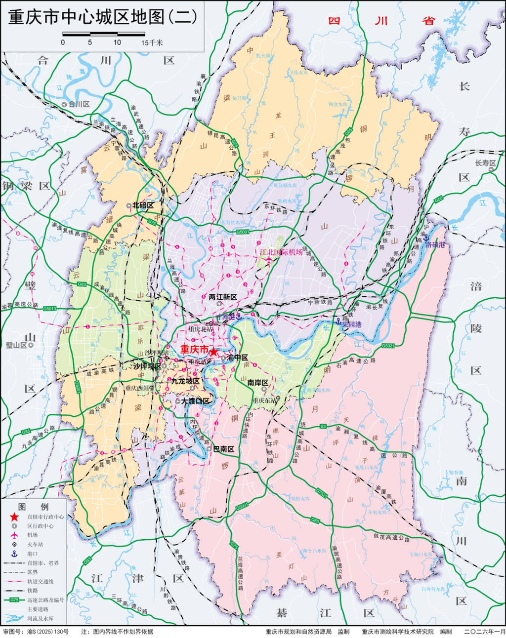 1月25日重庆两江新区行政区正式揭牌,全面开启了国家级新区和行政区融合发展的新征程。两江新区挂牌亮相之际,市规划自然资源局组织重庆市测绘科学技术研究院(重庆市地图编制中心)在第一时间完成重庆市、中心城区、两江新区、北碚区及相关地图的编制更新工作,为新区划的落地实施提供及时的地理信息支撑和地图保障服务。