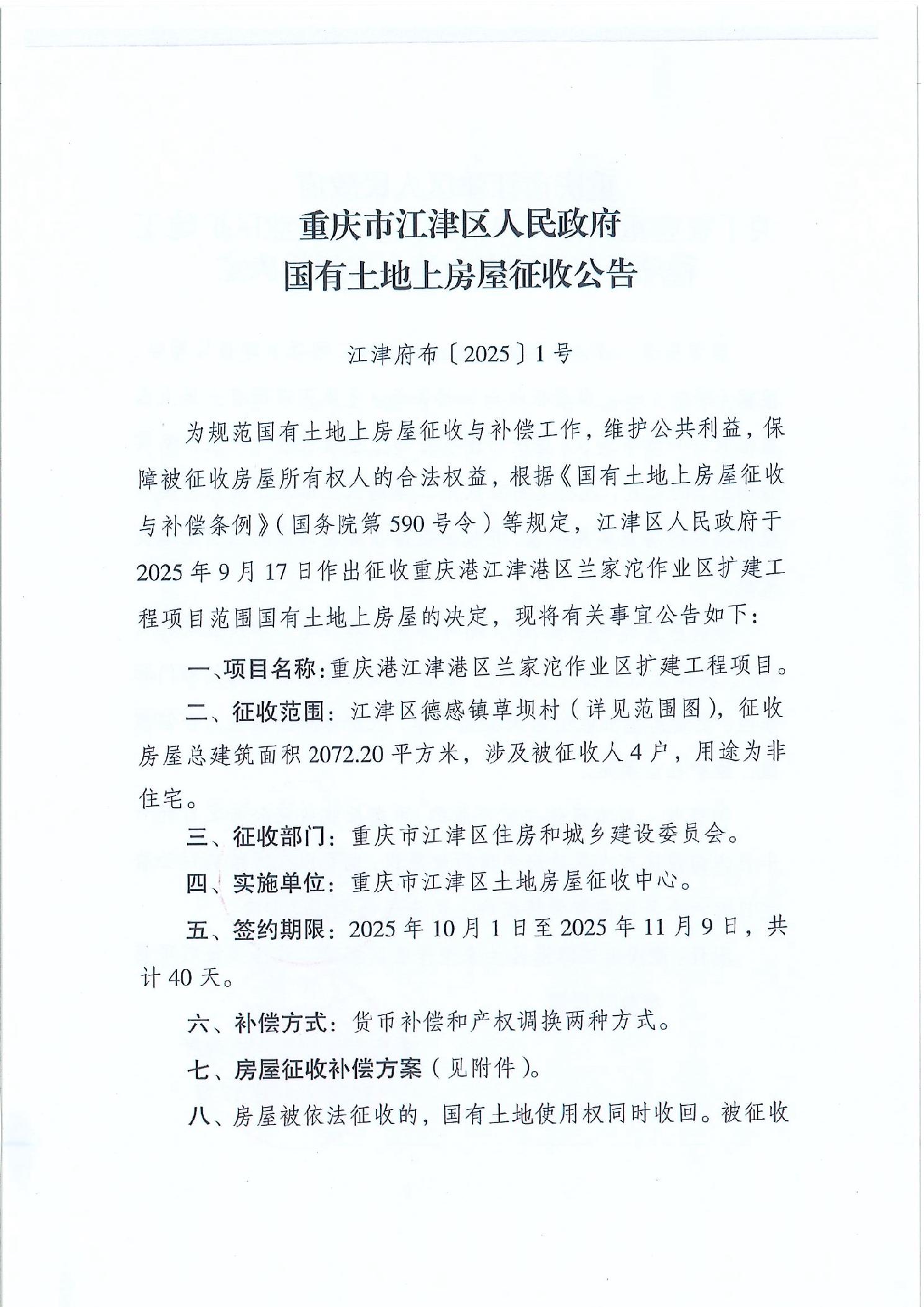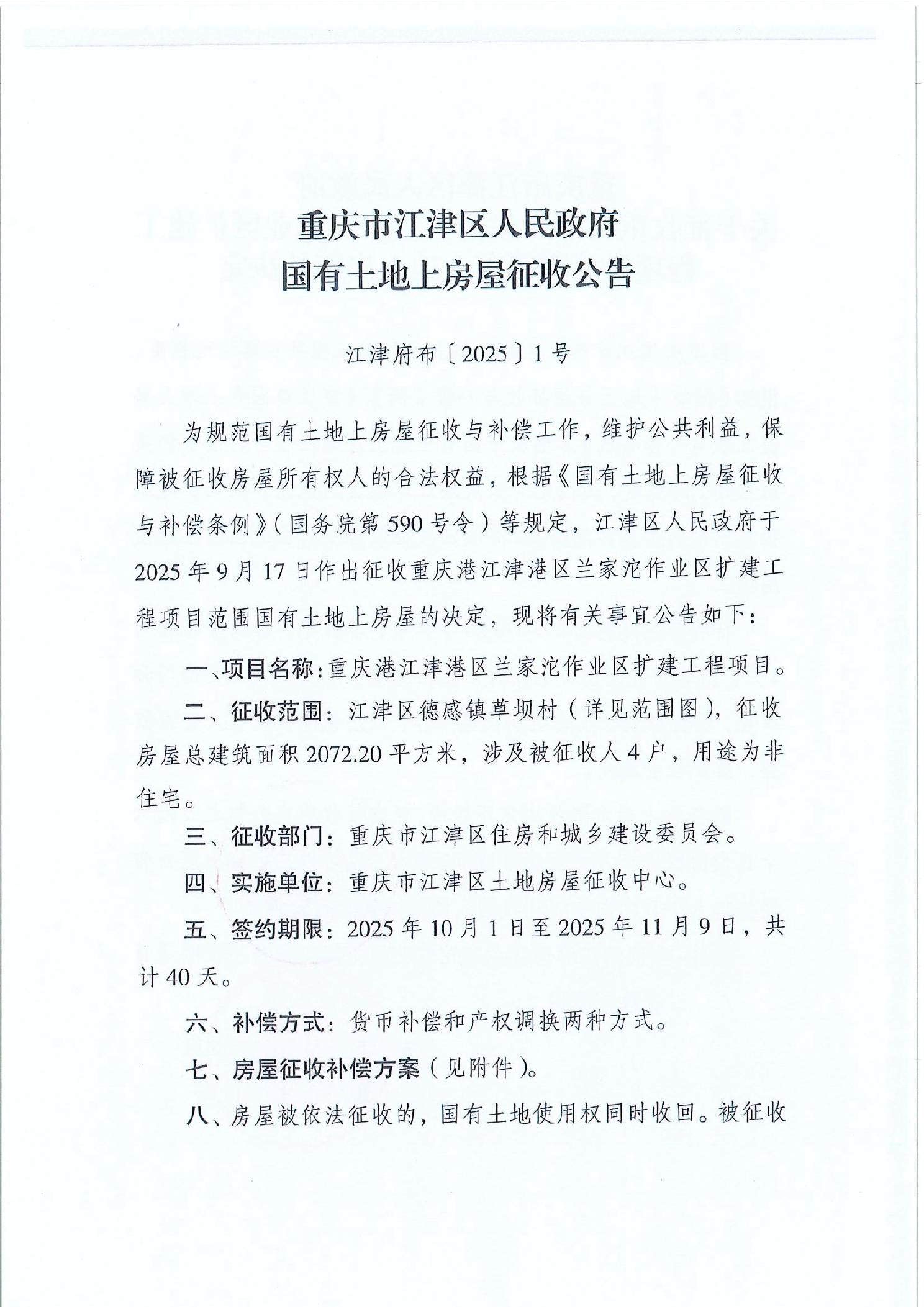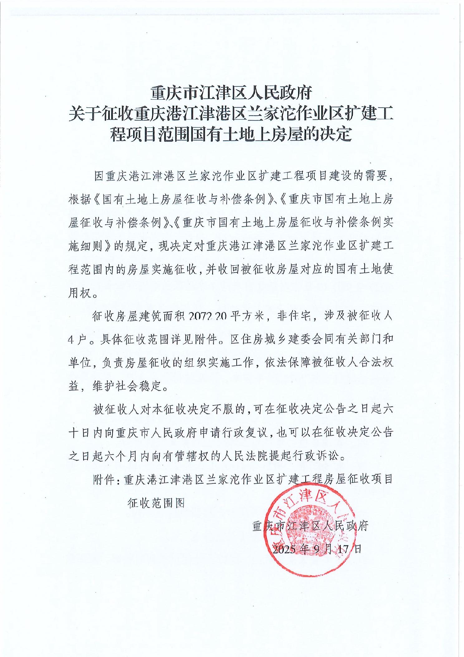当前位置: 重庆市江津区住房和城乡建设委员会>政务公开>政府信息公开目录>基层政务公开>国有土地上房屋征收与补偿领域信息公开>房屋征收>房屋征收决定