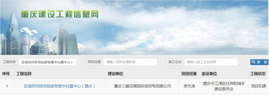 在“工程名称”处查询:区域性特殊危险废物集中处置中心(重庆)