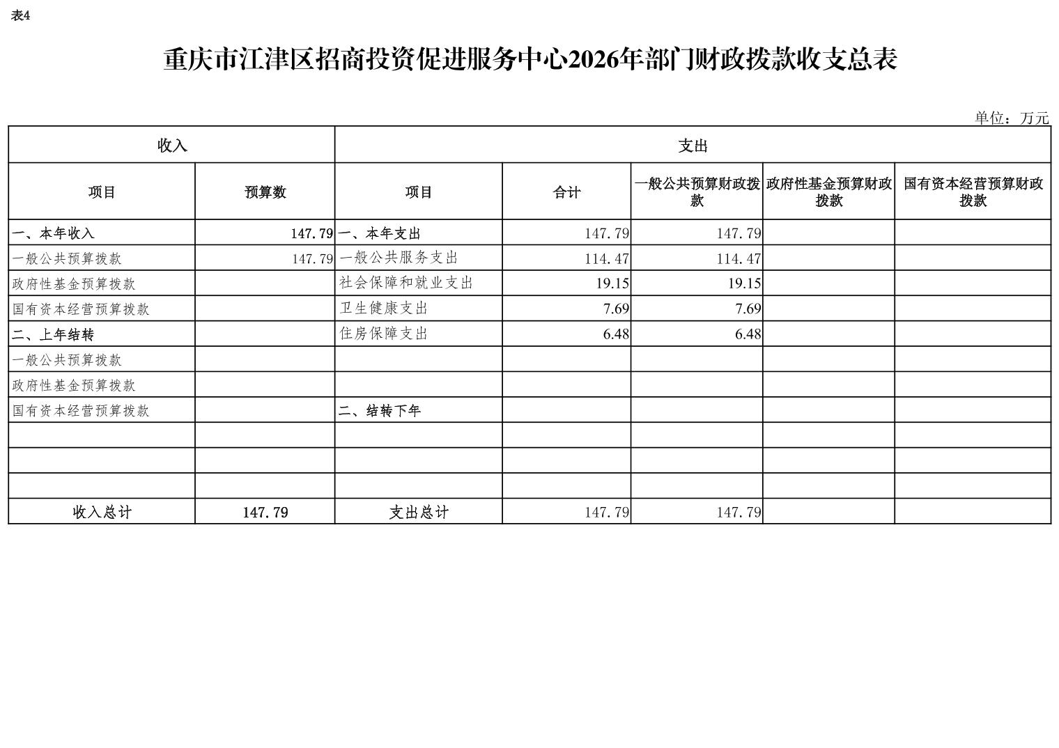 2026年财政拨款收入年初预算数147.79万元,支出年初预算数147.79万元。