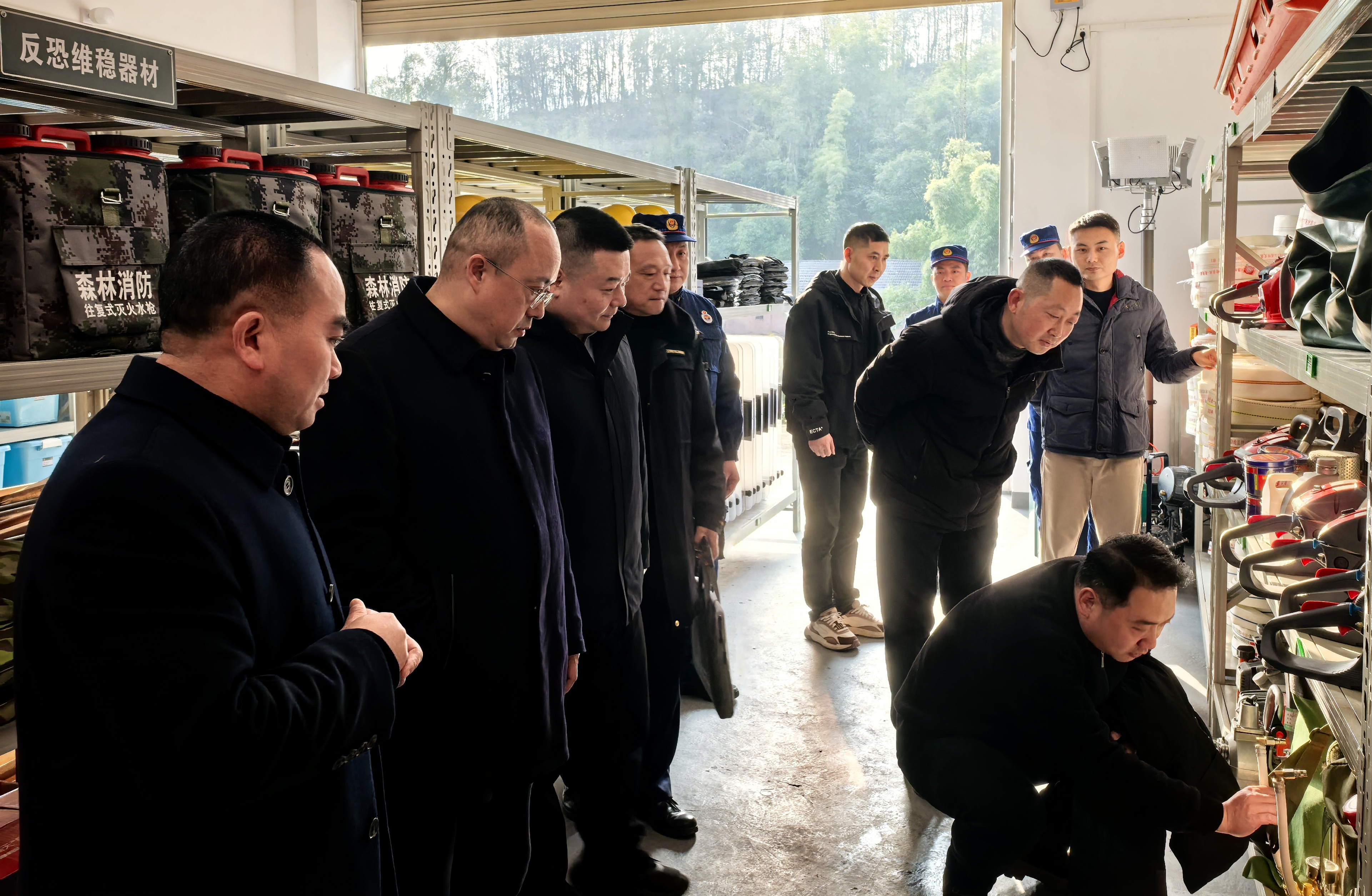 在蔡家镇消防站,李论副局长实地检查应急救援队伍人员编成、制度建设、日常训练、器材装备和维护保养情况,并与蔡家镇应急救援队、镇相关负责人进行工作交流,详细了解蔡家镇应急体系建设和响应机制情况。李论副局长指出,基层应急救援力量的战斗力不仅在于人员和装备“配齐”,更在于“用好”和“协调”,要在实施差异化配备设备和提升响应速度方面下大功夫,不断提升应急反应速度和处置能力。