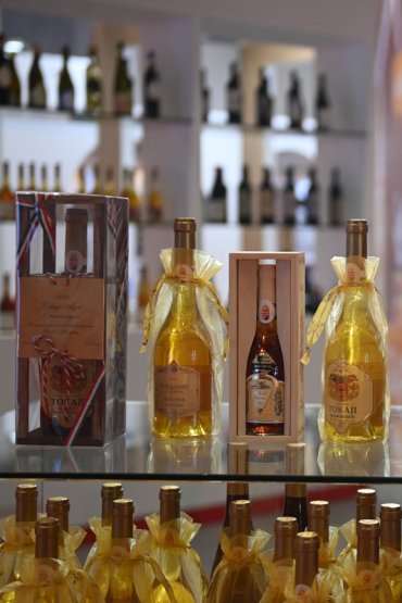 在第三届中国—中东欧国家博览会暨国际消费品博览会中东欧展馆匈牙利馆展出的贵腐酒(5月16日摄)。新华社记者 黄宗治 摄
