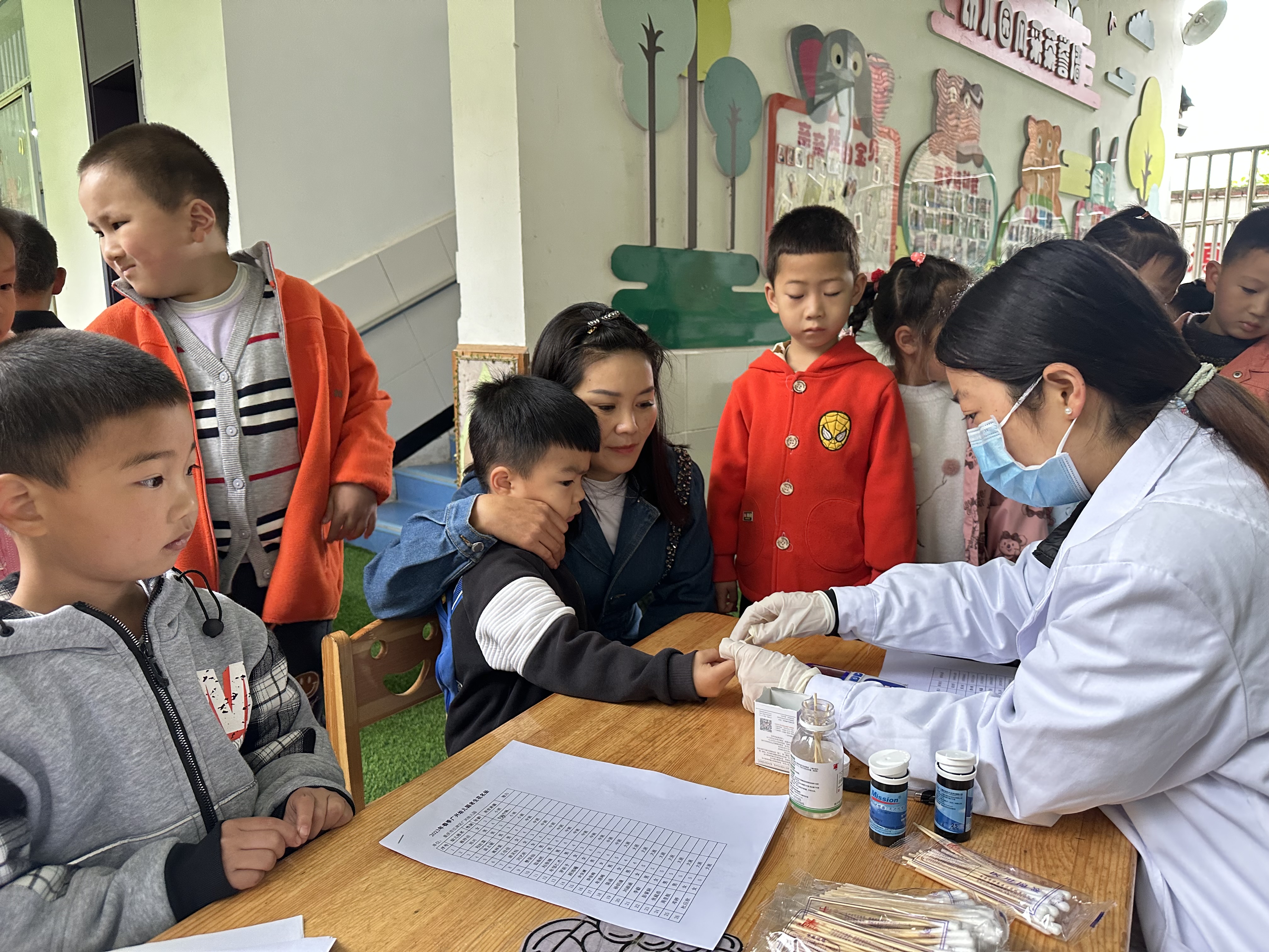 此次体检内容包括身高、体重、牙齿、视力和血红蛋白检测等,医生们分工明确,态度温和,对每个孩子的检查结果都做了详细的记录,整个体检过程井然有序。在各班教师的有序带领和医务人员的娴熟操作下,不到3个小时,就完成了45名幼儿全部体检项目。