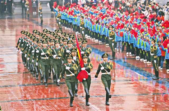 1月1日清晨,重庆人民广场举行元旦升国旗仪式,数千名群众、学生现场见证五星红旗在雄壮的国歌声中冉冉升起的庄严时刻。