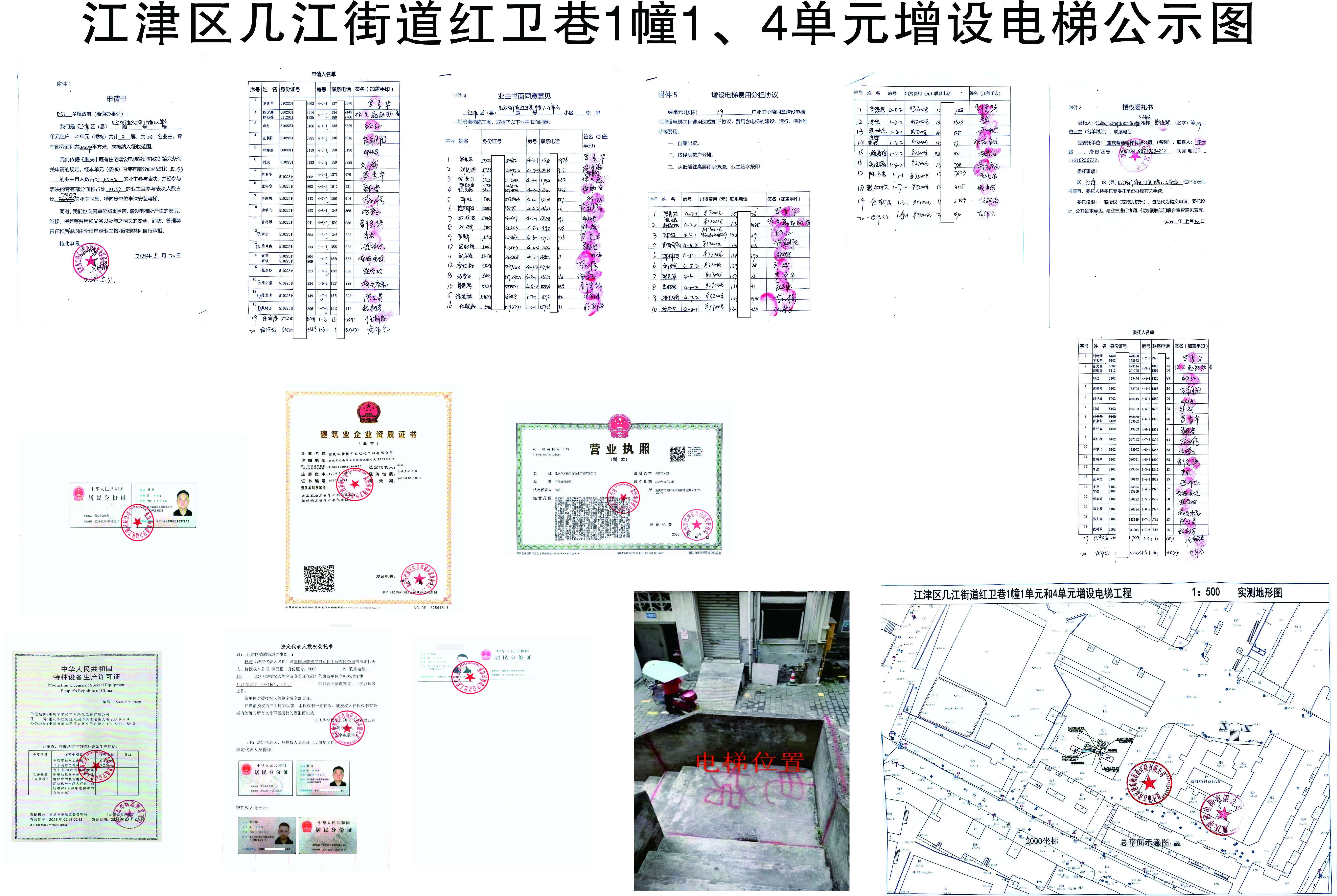 江津区几江街道红卫巷1幢1、4单元曾德琴等19户业主申请增设电梯,项目位于几江街道红卫巷1幢1、4单元。现我街道依申请对拟增设电梯内容进行公示,2024年9月4日-2024年9月10日。