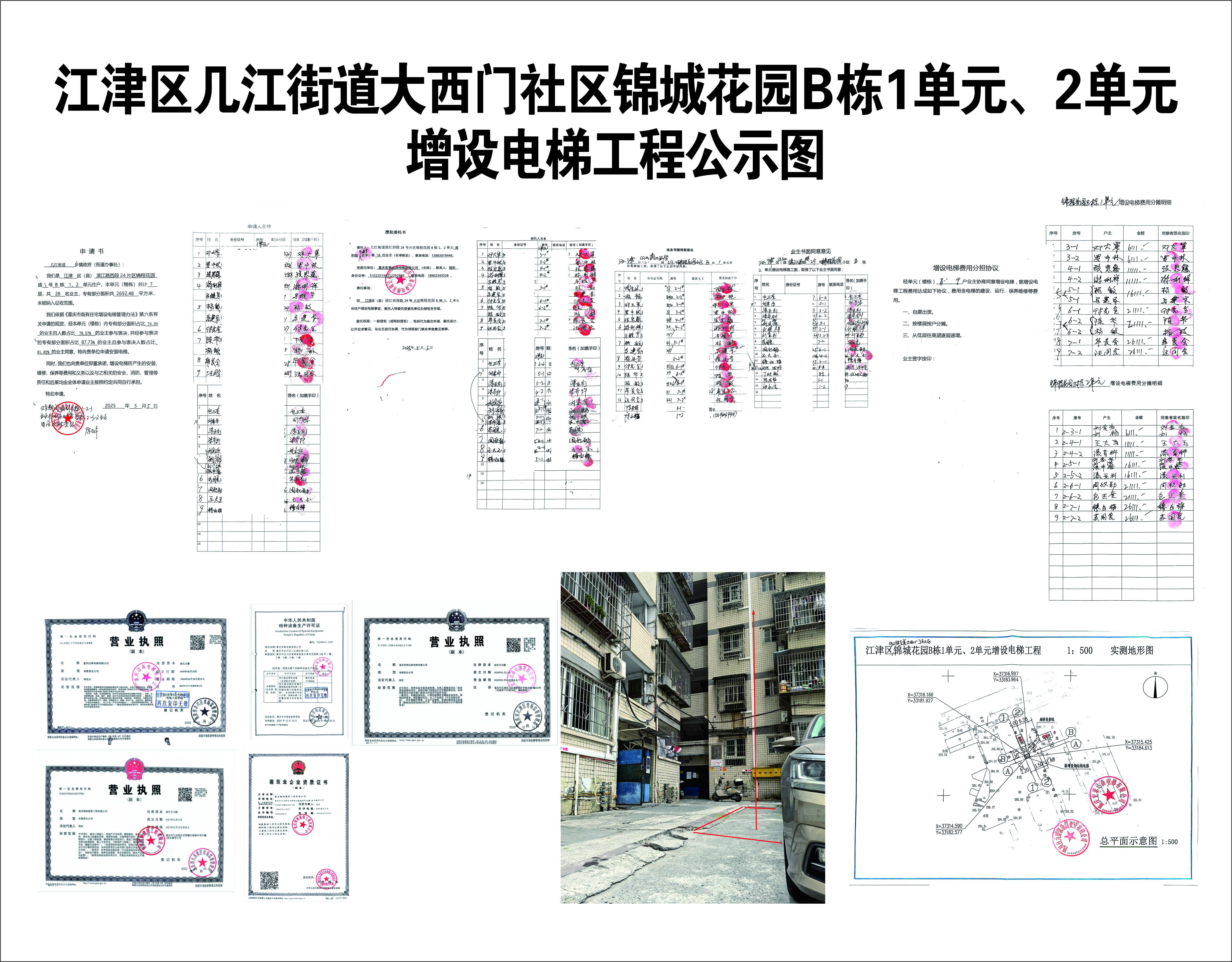 重庆市江津区几江街道锦程花园B栋1、2单元增设电梯的公示