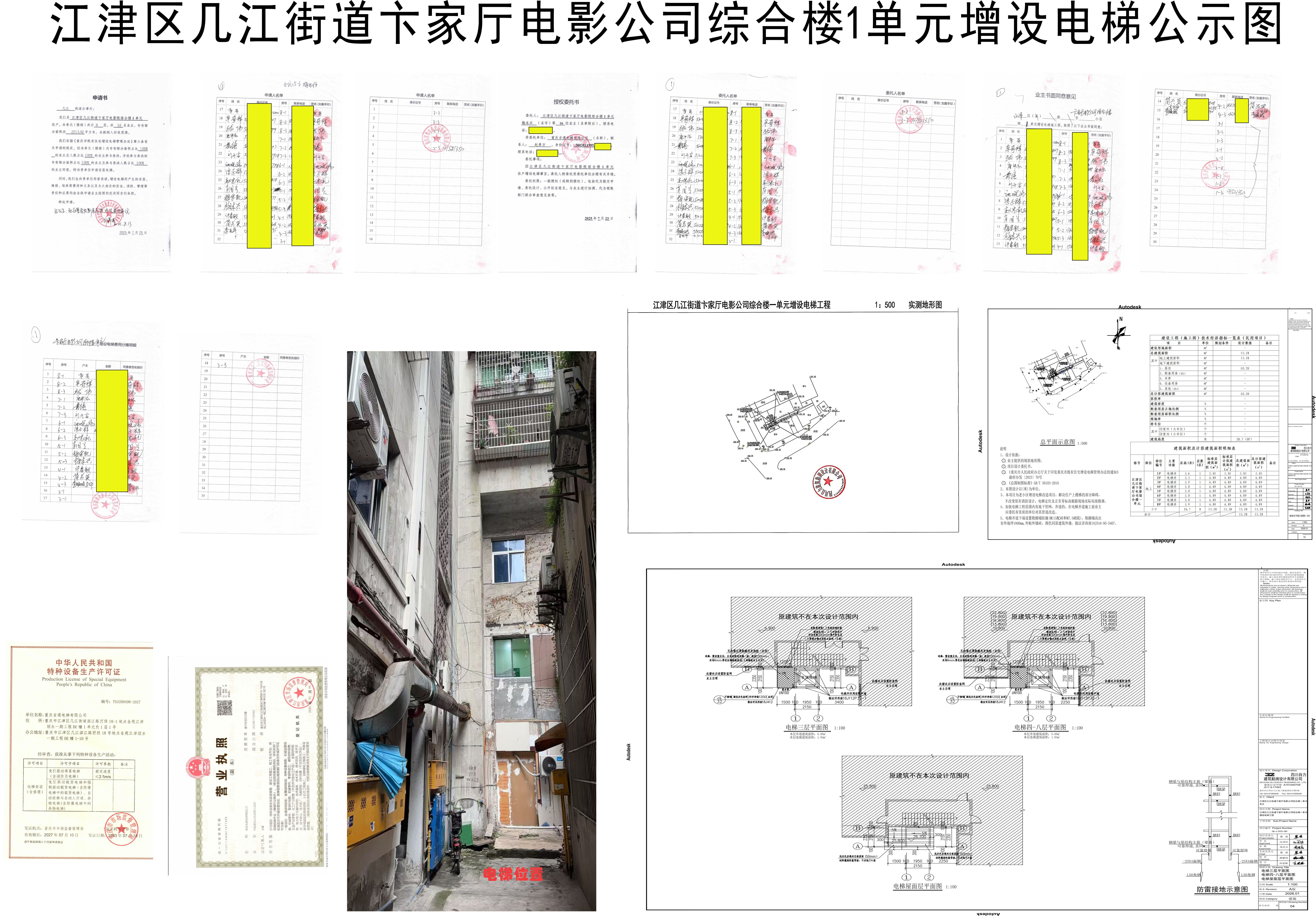 重庆市江津区几江街道卞家厅电影公司综合楼1单元增设电梯的公示