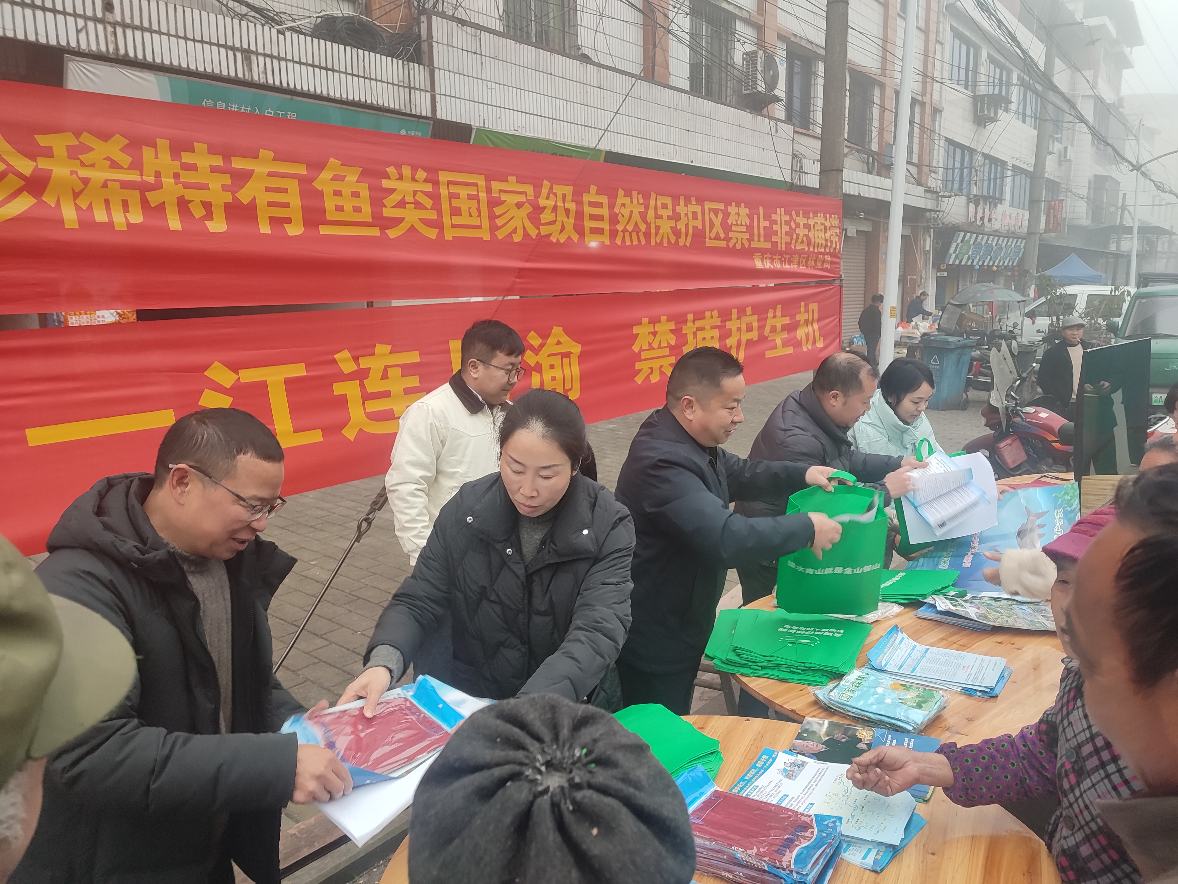 1月13日,江津区石蟆镇羊石社区迎来传统赶集日,现场人潮涌动、热闹非凡。为进一步提升群众对长江珍稀鱼类保护的认知,重庆市珍稀特有鱼类国家自然保护区管理处、江津区林业局、江津区农业农村委联合石蟆镇人民政府,抓住这一“人气高峰”,在羊石社区赶集中心广场共同举办了以“守护一江清水,共护珍稀鱼群”为主题的宣传活动。