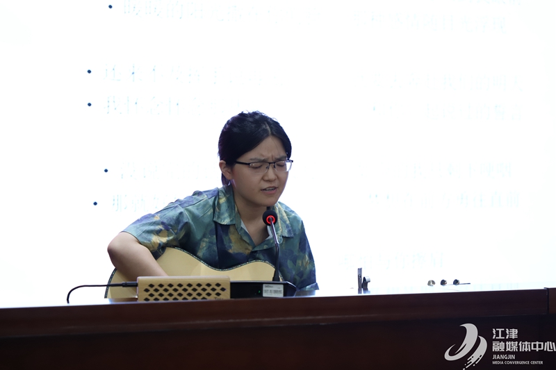 会上,3名实习大学生代表从各自小分队的实习经历出发,用PPT的形式汇报了一个多月的工作内容,分享了在基层社会实践过程中的收获和体会,并结合自己所学专业在基层的生动实践,通过视频展示和现场弹奏歌曲等形式展现了实习大学生们朝气蓬勃、多才多艺的一面。