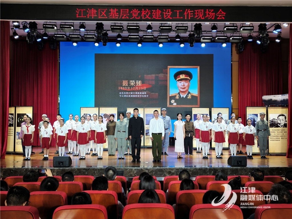 现场参观后,在郎家村学术报告厅,参会人员集中观看了由吴滩小学师生演绎的红色情景剧《追光》。该剧以聂荣臻元帅生平事迹为背景,生动展现了共产党人的理想信念与使命担当,这场穿越时空的历史对话赢得了现场阵阵掌声。