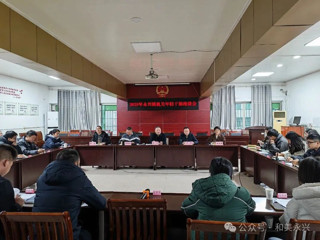 12月16日上午,永兴镇以“凝聚青年智慧,助力永兴发展”为主题,在镇机关四楼大会议室召开年轻干部座谈会,镇党政主要领导、相关分管领导与30余名年轻干部齐聚一堂,围绕个人成长、金色黄庄菜花节筹备、党组织建设等主题展开深入交流。