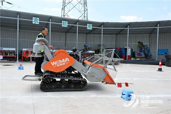 比赛现场,农机轰鸣、秩序井然。在拖拉机操作赛场,参赛选手驾驶威马1GZL-230B 履带式旋耕机平稳起步、精准转向,凭借细腻操控,用农机部件精准穿起地面铁环,直线行驶、调头、深度控制等动作一气呵成;在收割机赛场,选手熟练操控威马 4LZ-1.0B 小型收割机,操作流畅、节奏紧凑,充分展现“稳、准、快、安”的专业素养。裁判组由农机领域技术专家与资深操作员组成,严格依照评分标准现场打分、即时公示,确保竞赛公平、公正、公开。