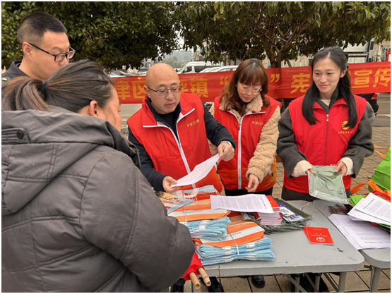 支坪镇开展“12·4”国家宪法宣传日宣传活动,平安法治岗、应急岗、司法所、津坪社区联合开展宣传工作。