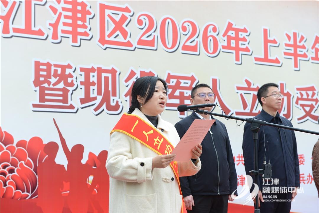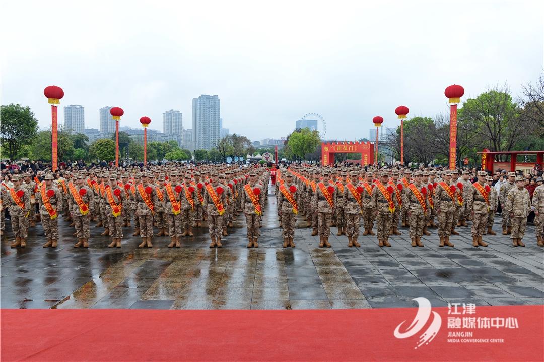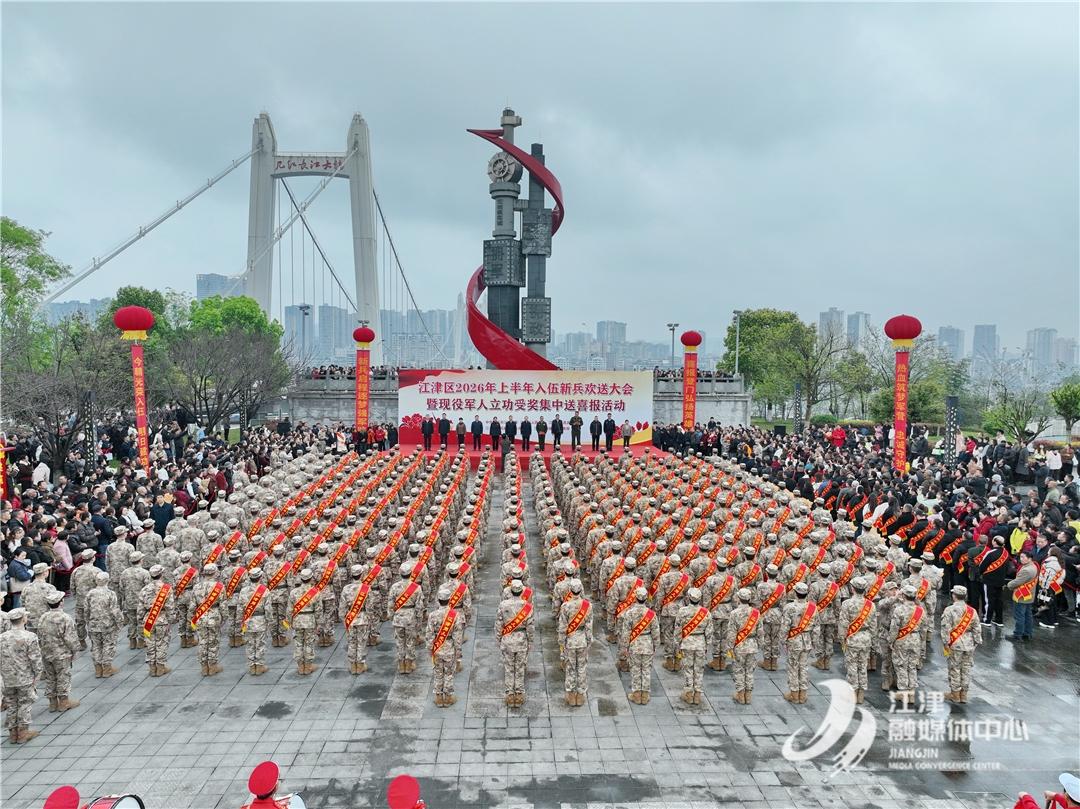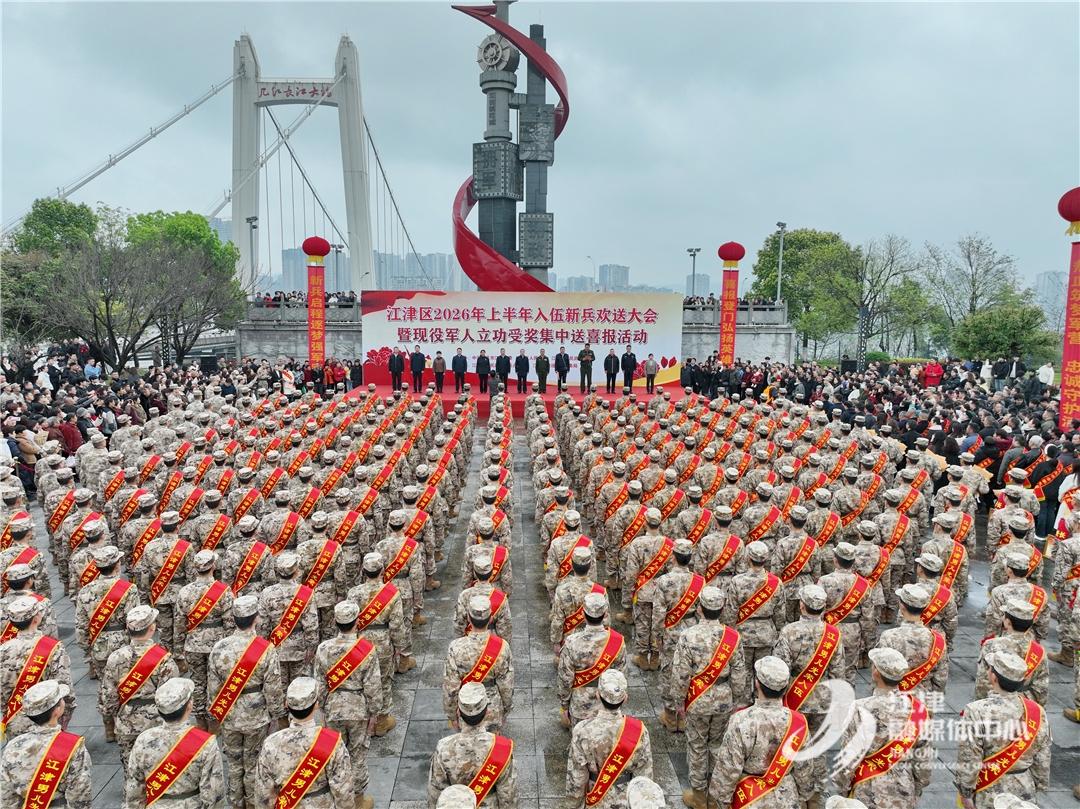 江津融媒讯(记者 李江)3月16日,我区2026年上半年入伍新兵欢送大会暨现役军人立功受奖集中送喜报活动在双拥广场隆重举行,为200余名即将投身国防事业的优秀青年壮行,为立功受奖的江津籍现役军人及家属集中送喜报。作为聂荣臻元帅的故乡、八获“全国双拥模范城” 的红色热土,江津以这场仪式致敬军人荣光、凝聚强军力量,让拥军优属的传统美德在帅乡大地上赓续传承,也让参军报国的热血情怀在青年心中激荡。