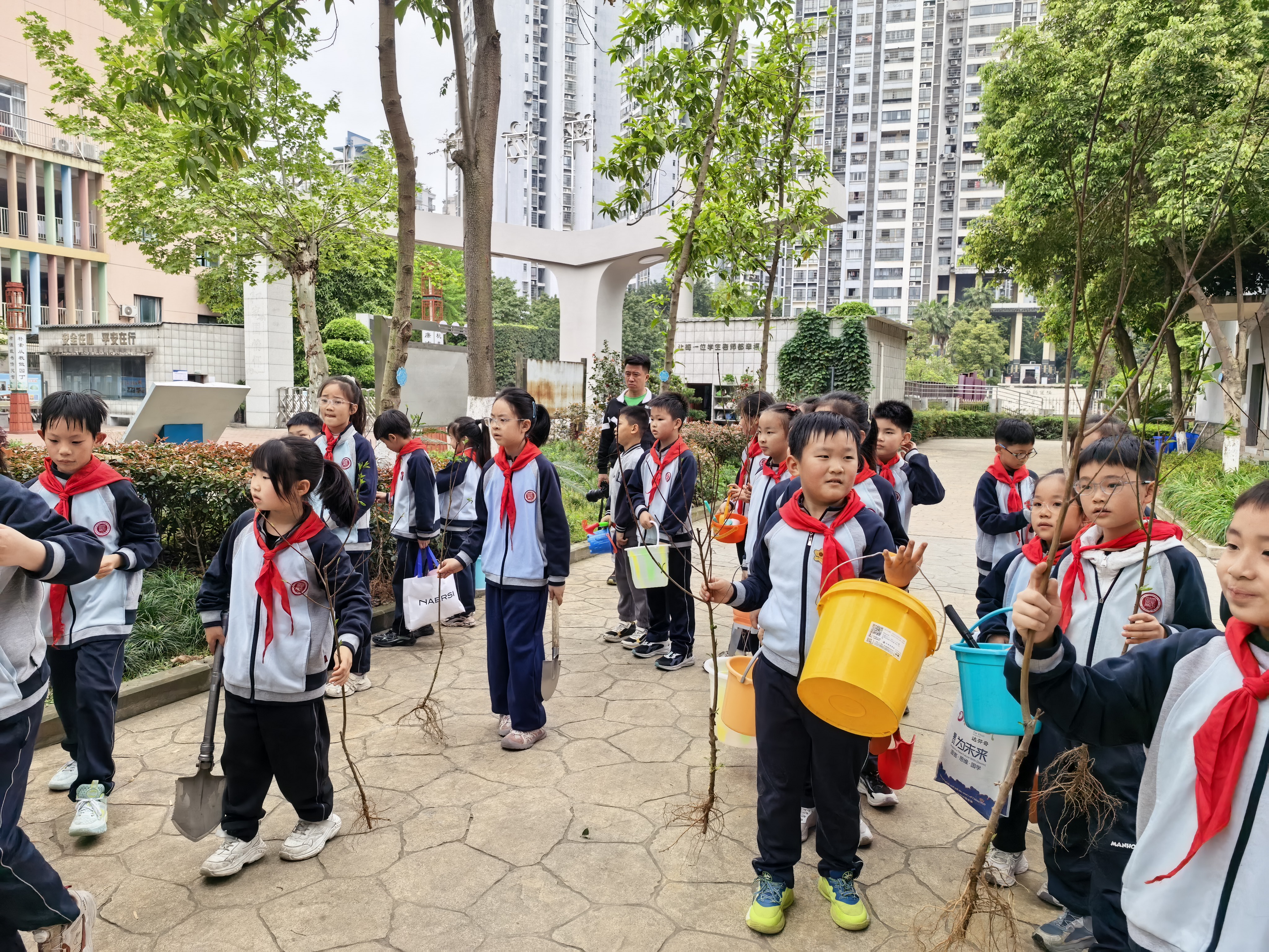 3月30日,江津区生态环境局联合区林业局、区教委、四牌坊尚融小学开展“我和小树共成长”志愿活动,30余名来自四牌坊尚融小学的学生带着铁锹、水桶、锄头等工具来到植树区,共同为家乡添植新绿。
