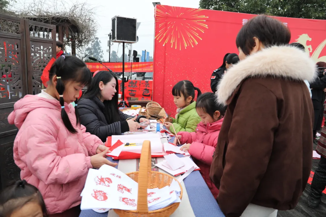 在剪纸老师的指导下,观众围在桌旁,大家手持红纸凝神创作。有的剪刻吉祥“福”字,有的勾勒马年生肖纹样,剪刀开合间,细碎的红纸屑簌簌飘落。在欢乐融洽的氛围中,让大家感受非遗剪纸的魅力,传递马年新春的喜庆与温暖。