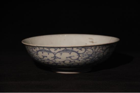 清团花卷草纹青花瓷碗