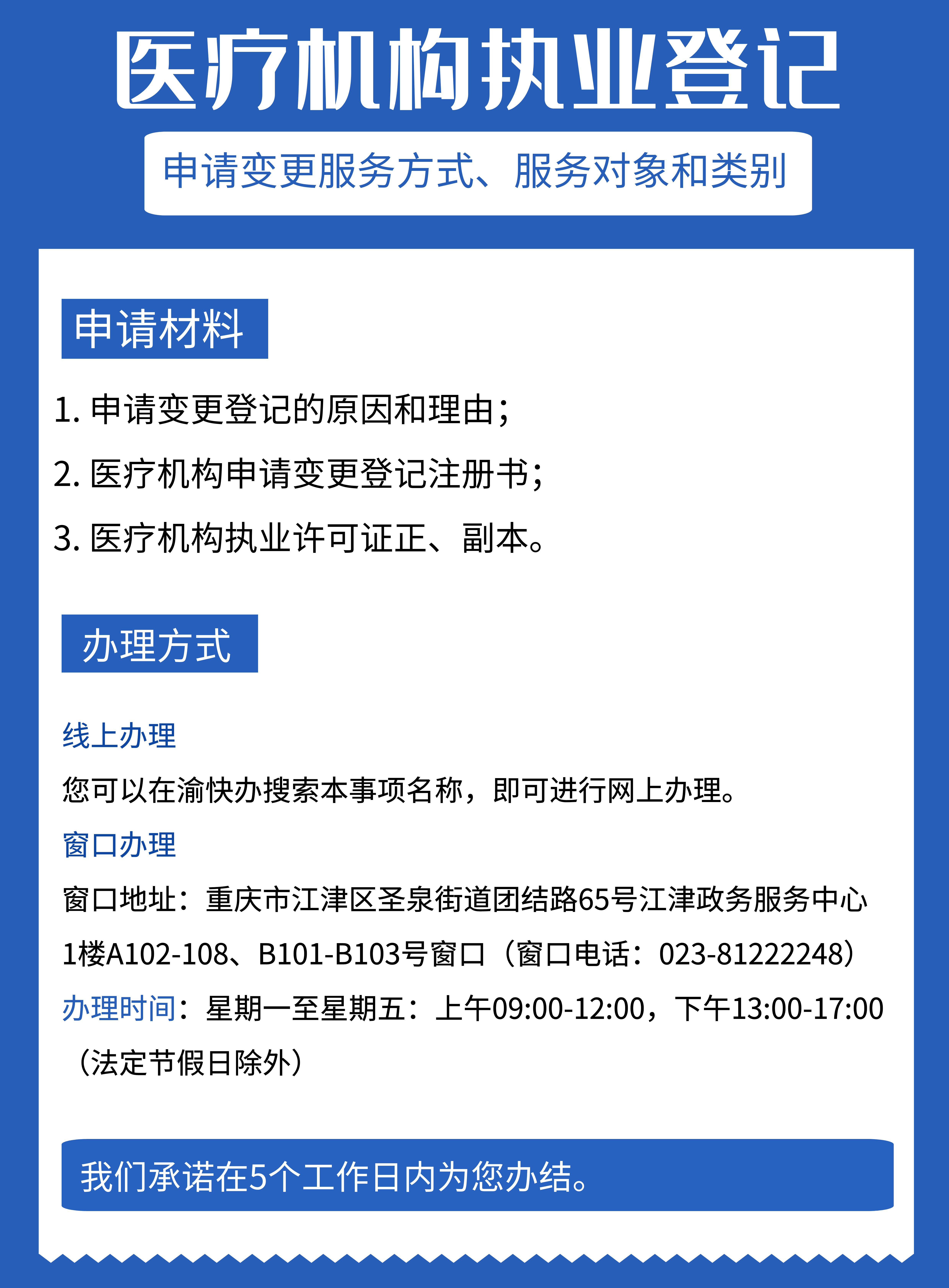 办事指南名称:医疗机构执业登记(申请变更服务方式、服务对象和类别)
