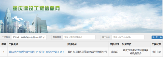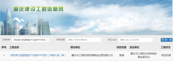 在“工程名称”处查询: 团结湖大数据智能产业园PPP项目(祥福大道二期)