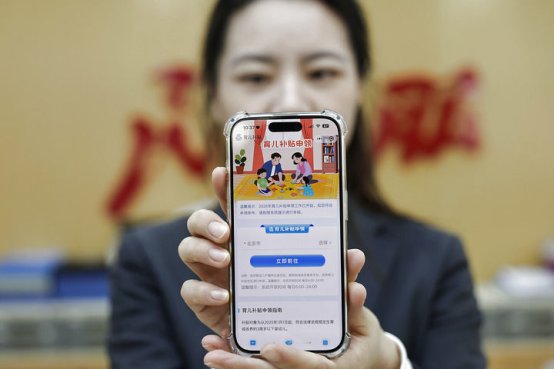 2026年1月5日,工作人员在北京市西城区月坛街道政务服务中心展示“育儿补贴”小程序。新华社记者 张玉薇 摄