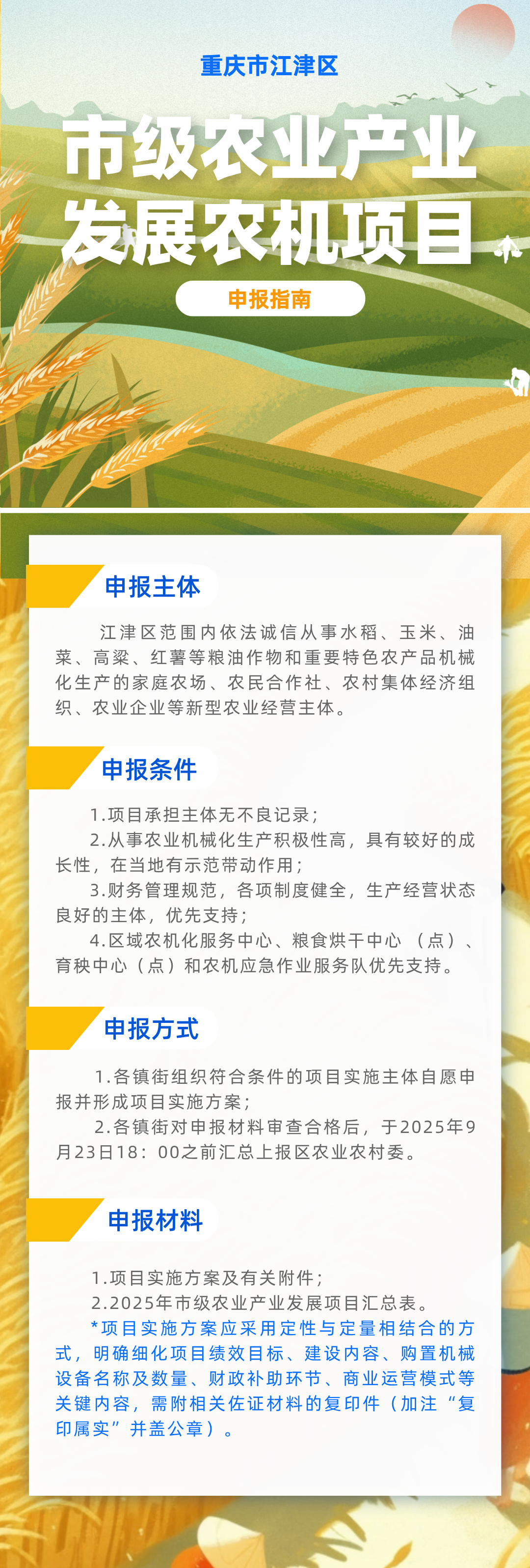 重庆市江津区农业农村委员会关于申报2025年市级农业产业发展农机项目的通知