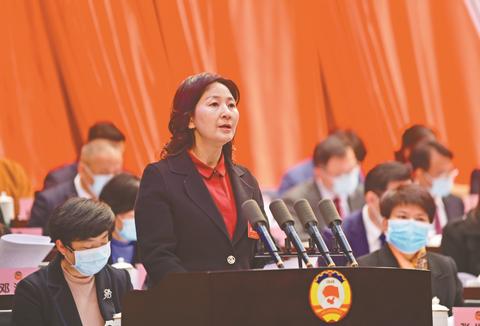 区政协主席杨利向大会作工作报告。 记者 贺奎 摄