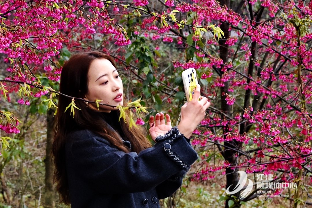 值得一提的是,今年江津区首届猫山樱花文化节也在2月5日正式开幕,得益于温暖气候,位于猫山樱博园里的中国红等珍稀樱花品种部分已提前绽放,整个景区花期将持续50天左右,带来了一场赏心悦目的早春视觉盛宴。