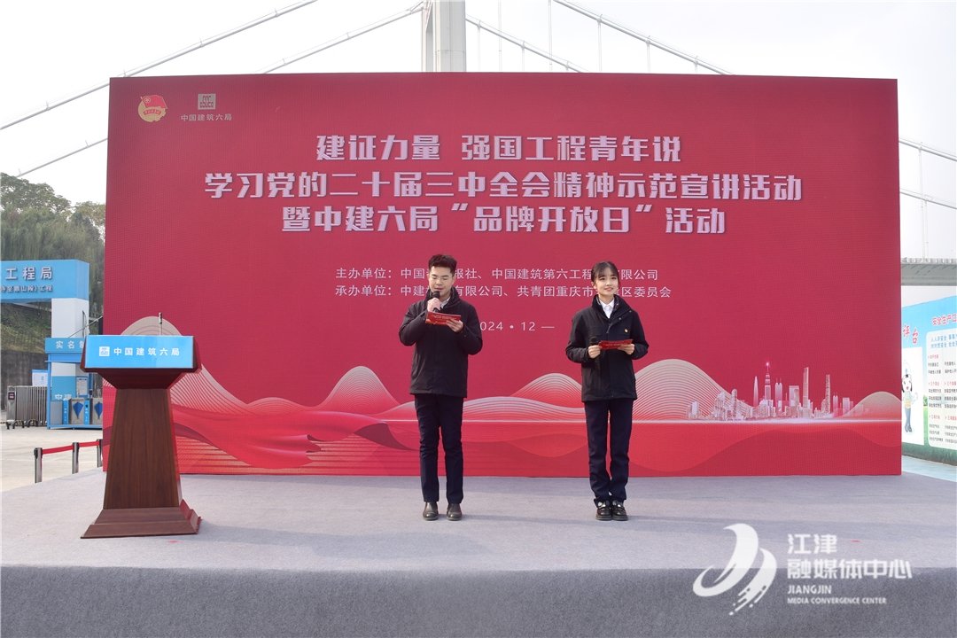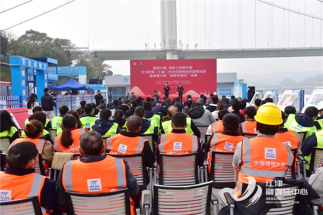 12月19日,由中国青年报社、中国建筑第六工程局有限公司主办,中建桥梁有限公司、共青团重庆市江津区委员会承办的“建证力量 强国工程青年说”学习党的二十届三中全会精神示范宣讲活动暨中建六局“品牌开放日”活动在市郊铁路跳磴至江津线(圣泉寺至鼎山段)项目南主塔施工现场安全广场举行。