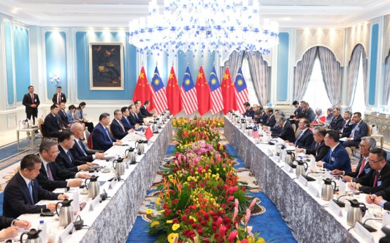 习近平指出,马方将今年东盟的主题定为“包容性和可持续性”,体现了对时局的深刻洞察。中方支持马来西亚发挥东盟轮值主席国作用,愿同地区国家一道,尽早签署中国-东盟自由贸易区升级议定书,以开放包容、团结合作抵制“脱钩断链”、“小院高墙”和滥征关税,以和平、合作、开放、包容的亚洲价值观回应弱肉强食的丛林法则,以亚洲的稳定性和确定性应对世界的不稳定和不确定。